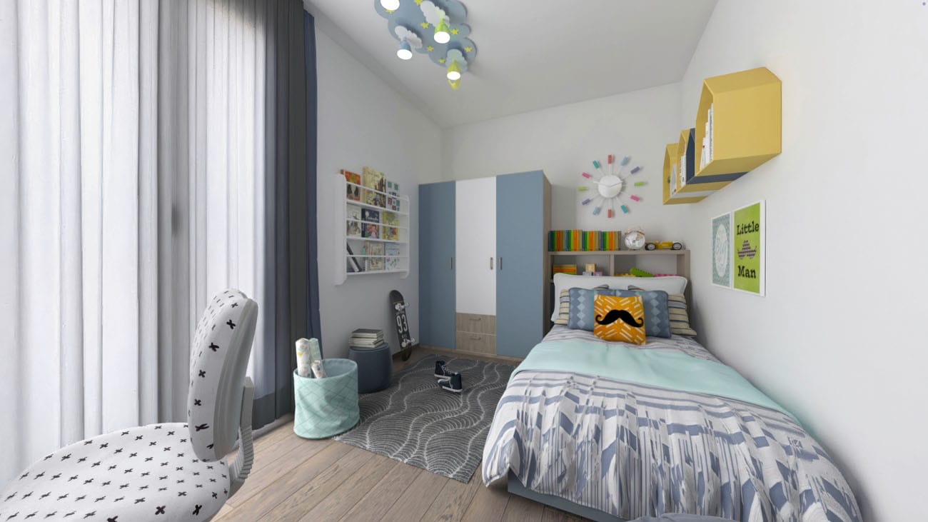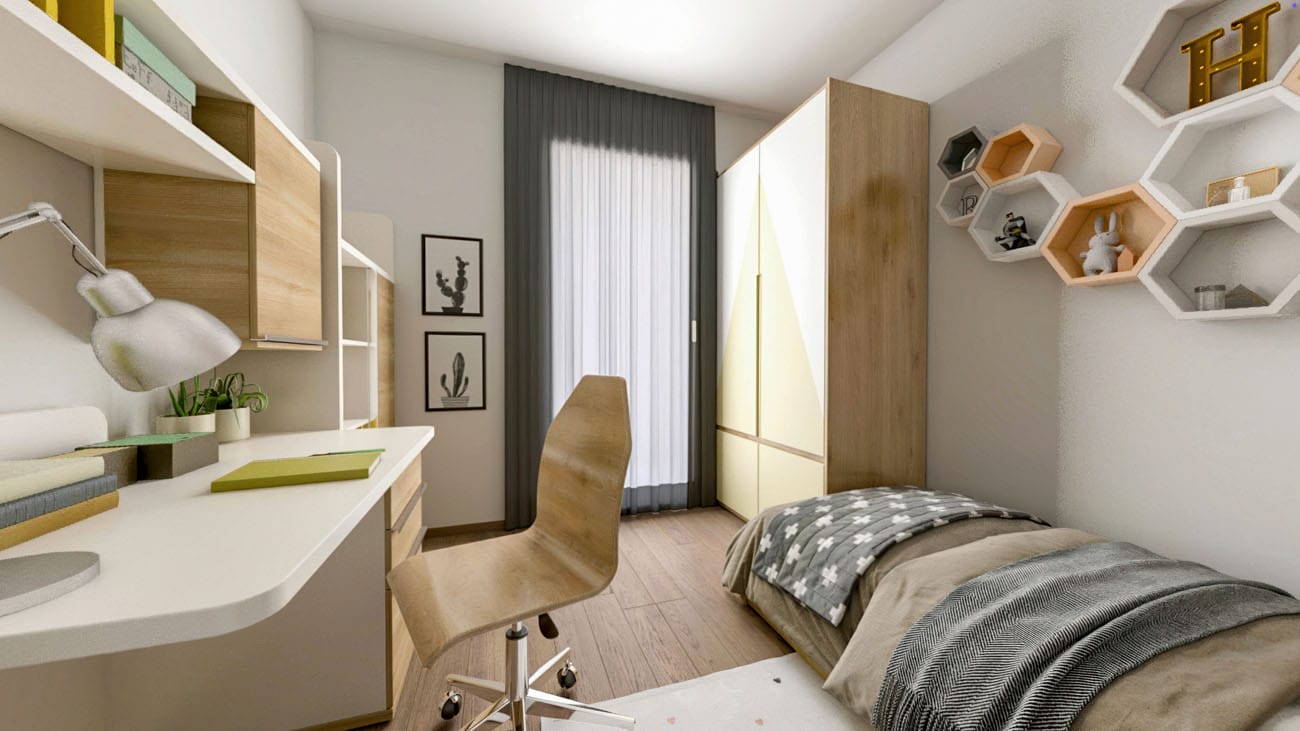 Quadrilocale composto da: ingresso con guardaroba, soggiorno, cucina a vista, disimpegno e ripostiglio, camera da letto, due camerette, due bagni, terrazzo, cantina. DisponibilitĂ box auto.