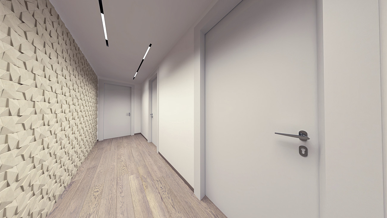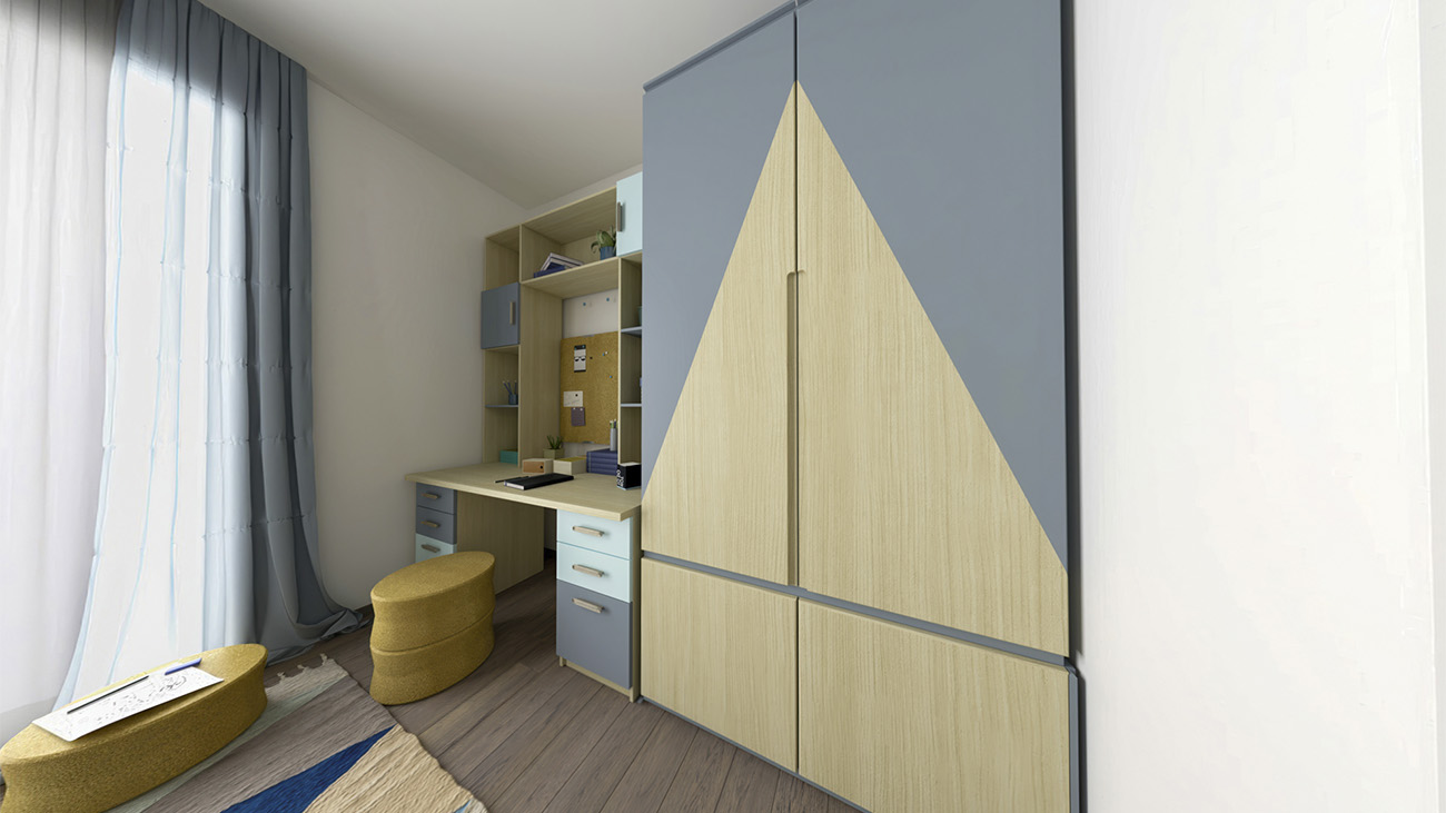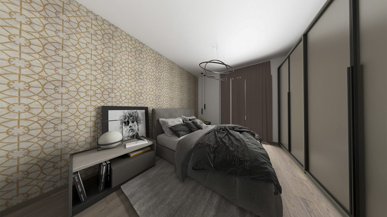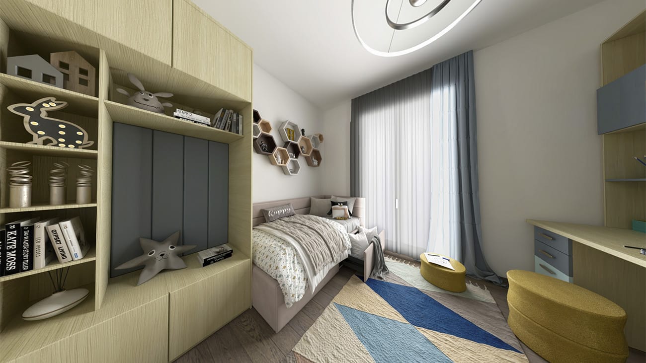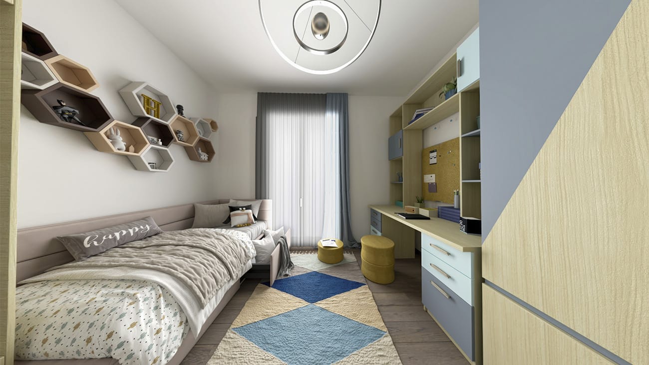 Trilocale composto da: soggiorno, cucina a vista, disimpegno, camera da letto, cameretta, un bagno, terrazzo e cantina. DisponibilitĂ box auto.