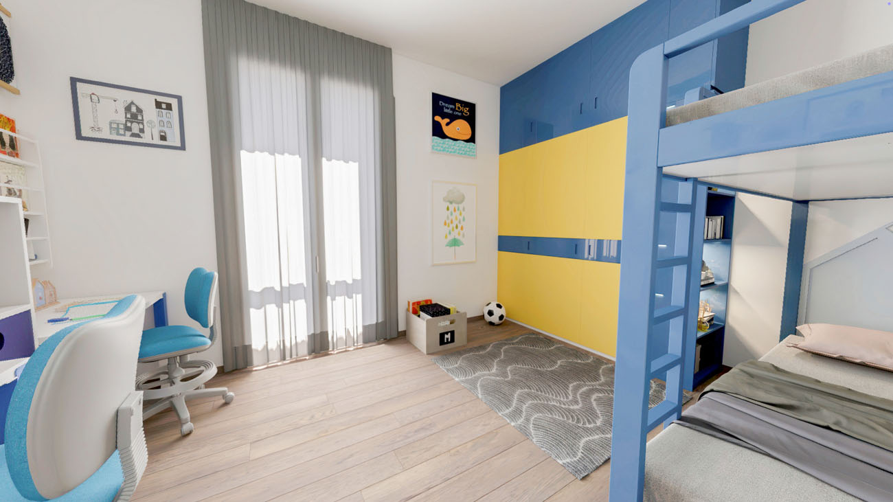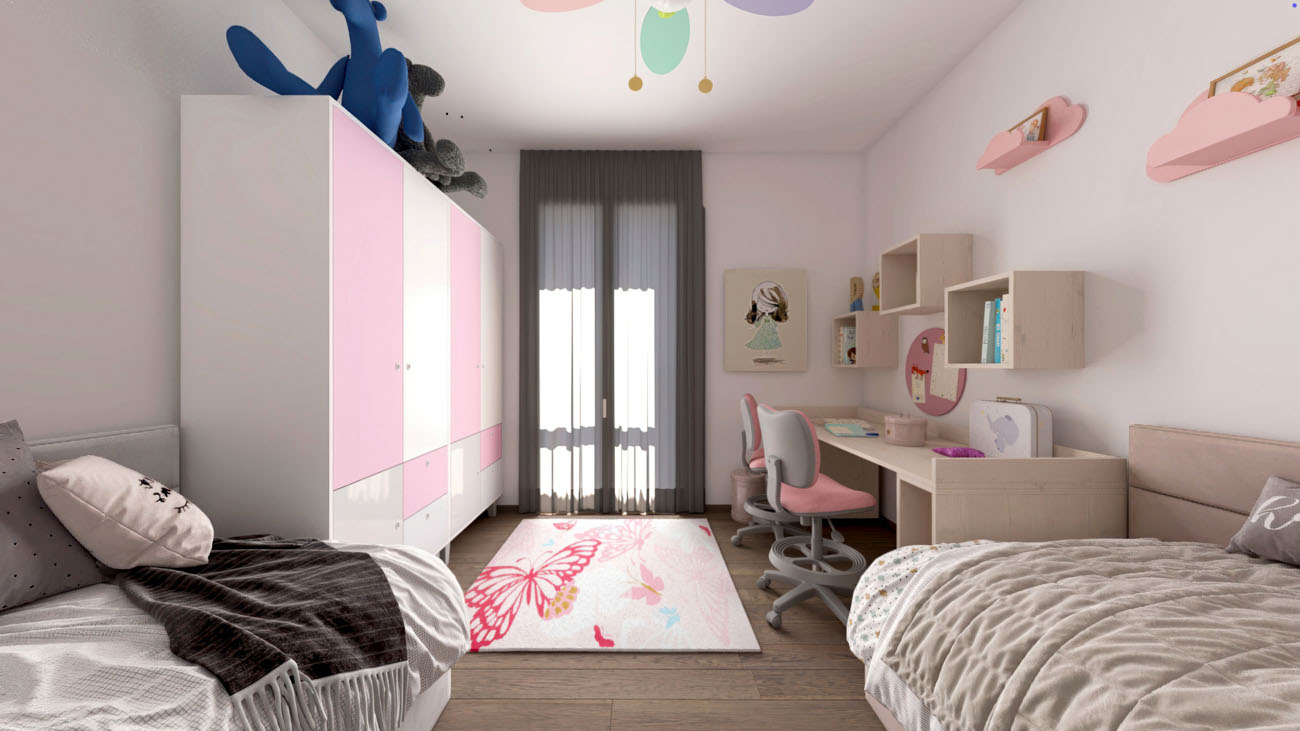 Quadrilocale composto da: ingresso, soggiorno, cucina abitabile, disimpegno, camera da letto, due camerette, due bagni, terrazzo, cantina. DisponibilitĂ box auto.