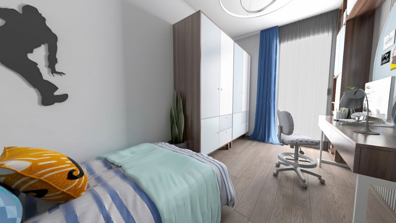 Trilocale composto da: soggiorno, cucina a vista, disimpegno, camera da letto, cameretta, un bagno, terrazzo, cantina. DisponibilitĂ box auto.