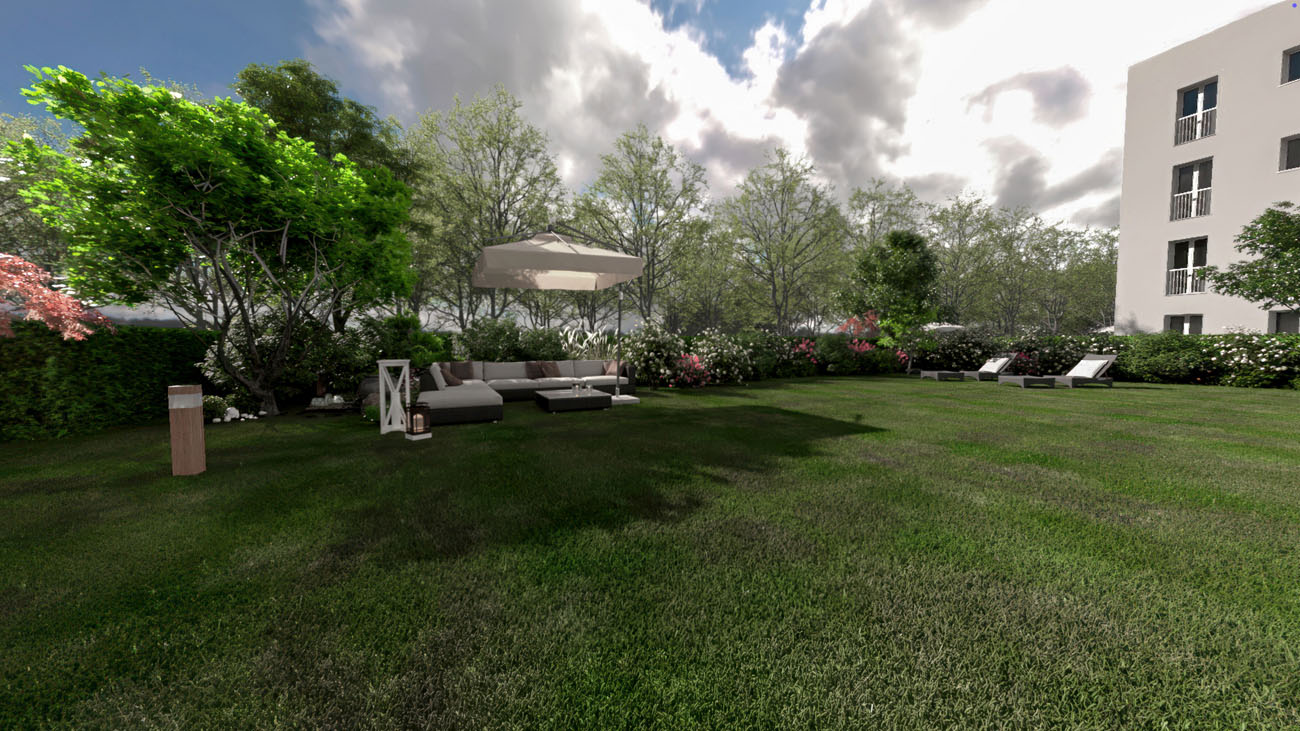 Quadrilocale composto da: ingresso, soggiorno, cucina a vista, disimpegno, camera da letto, due camerette, due bagni, giardino privato e cantina. DisponibilitĂ box auto.