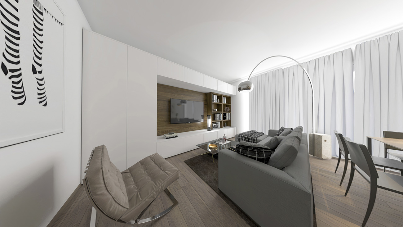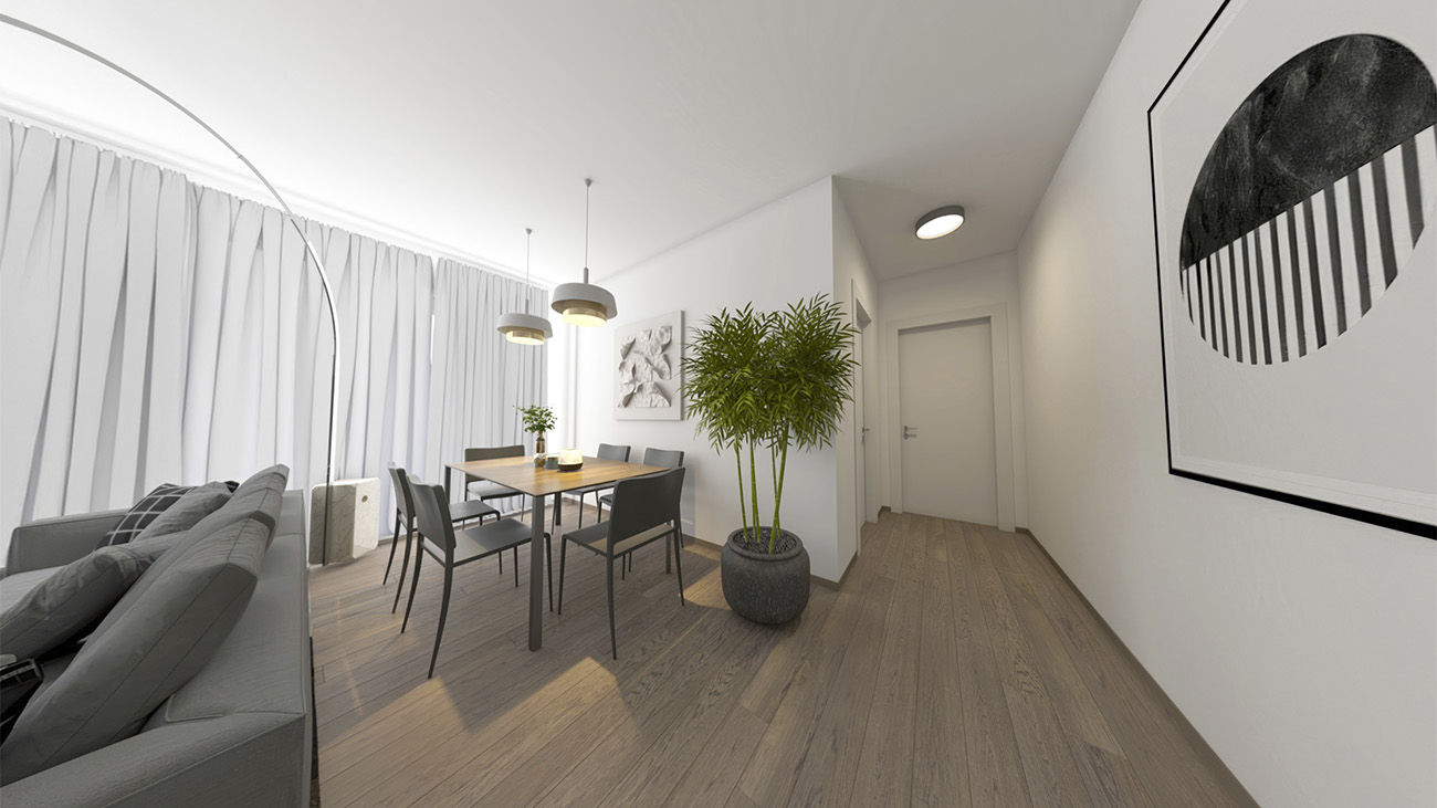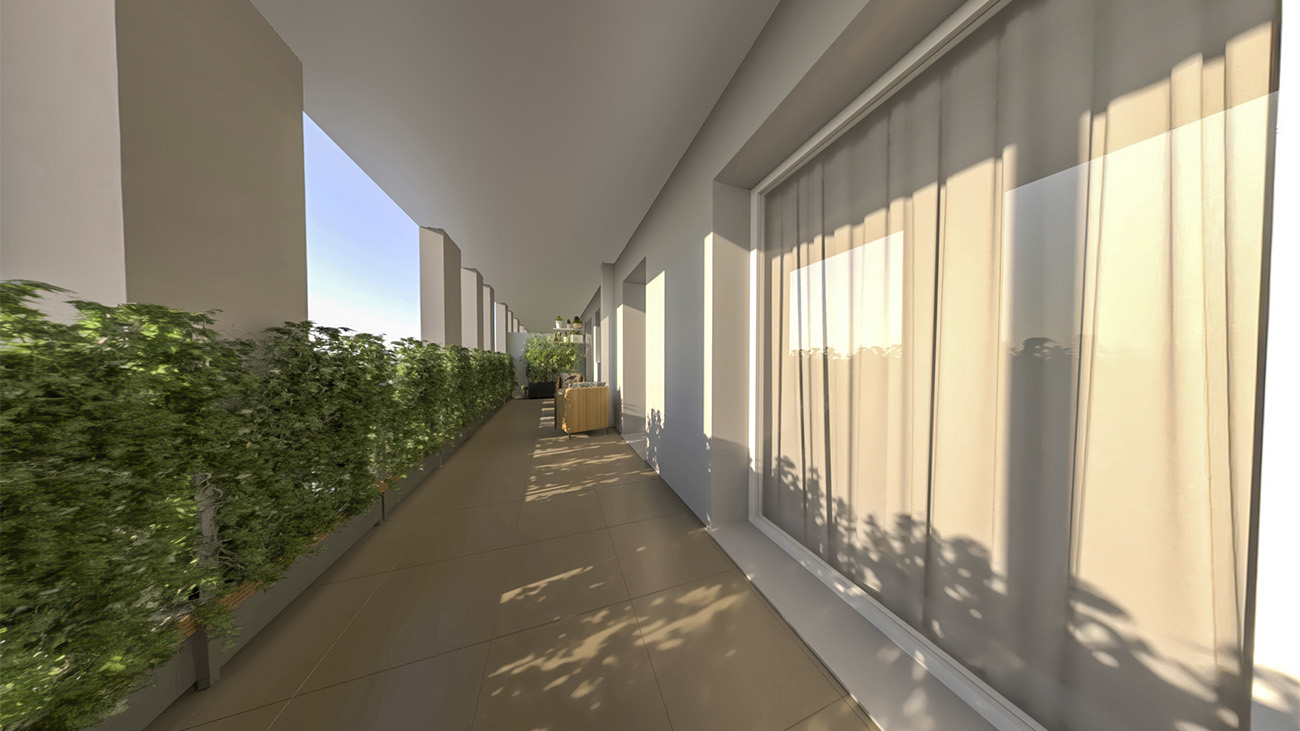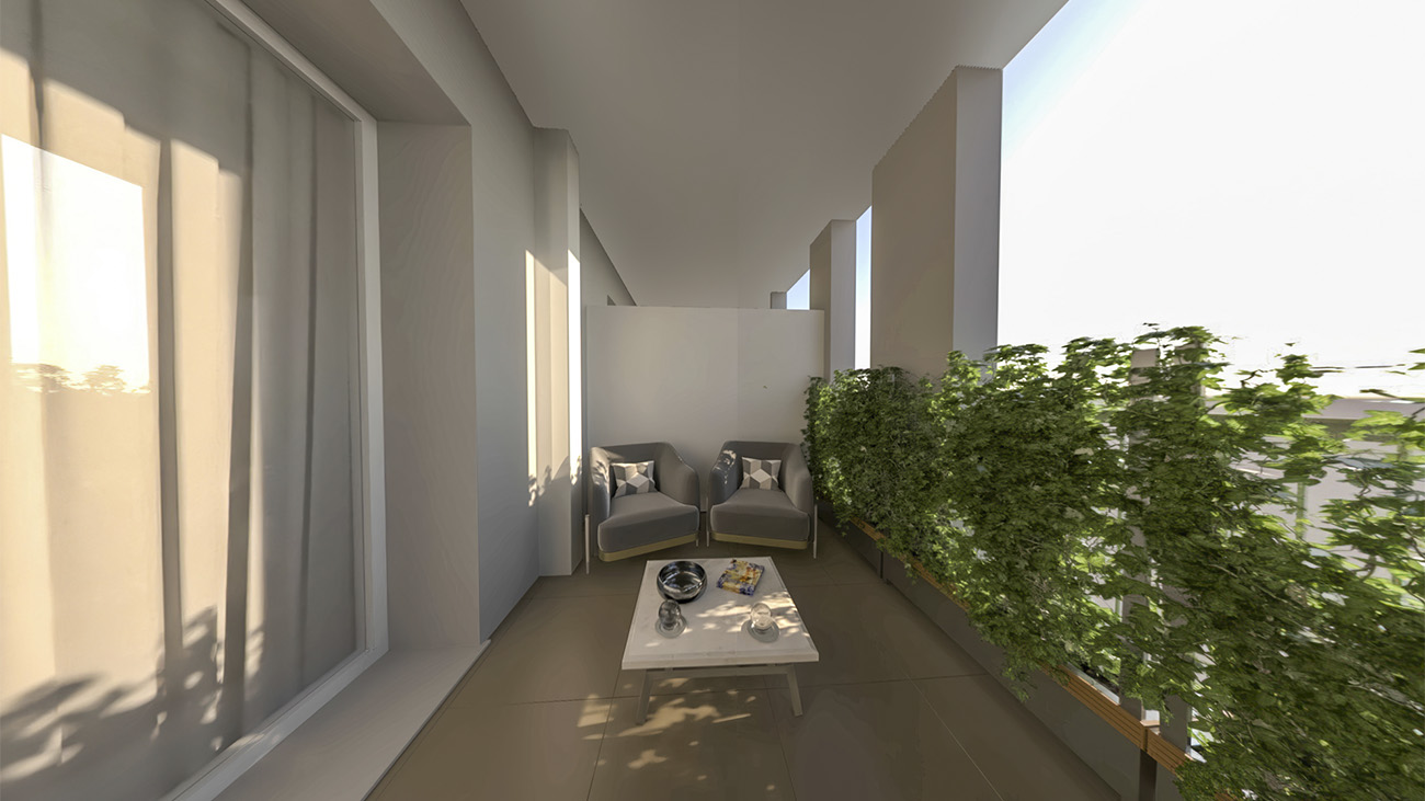 Trilocale composto da: soggiorno, cucina abitabile, disimpegno, camera da letto con cabina armadio, cameretta, due bagni, terrazzo e cantina. DisponibilitĂ box auto.