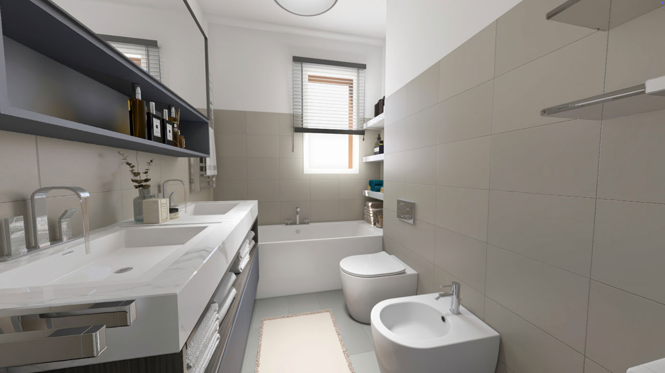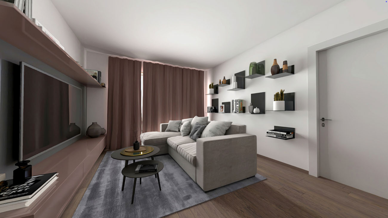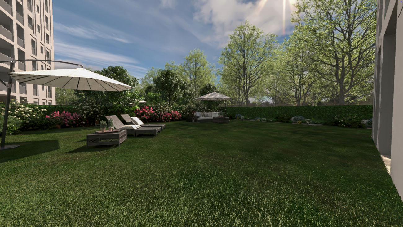 Trilocale composto da: soggiorno, cucina abitabile, disimpegno e ripostiglio, camera da letto, cameretta, due bagni, giardino privato e cantina. DisponibilitĂ box auto.