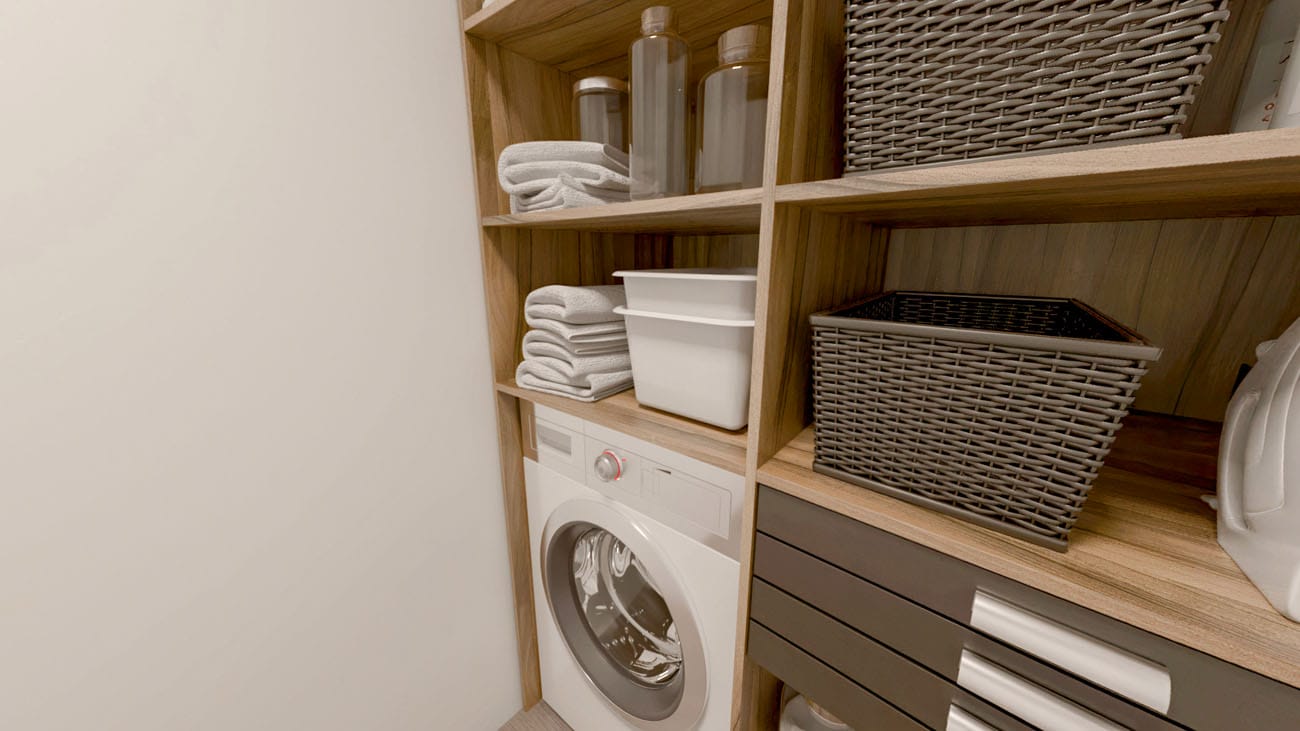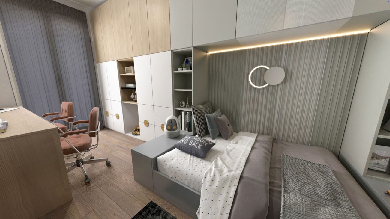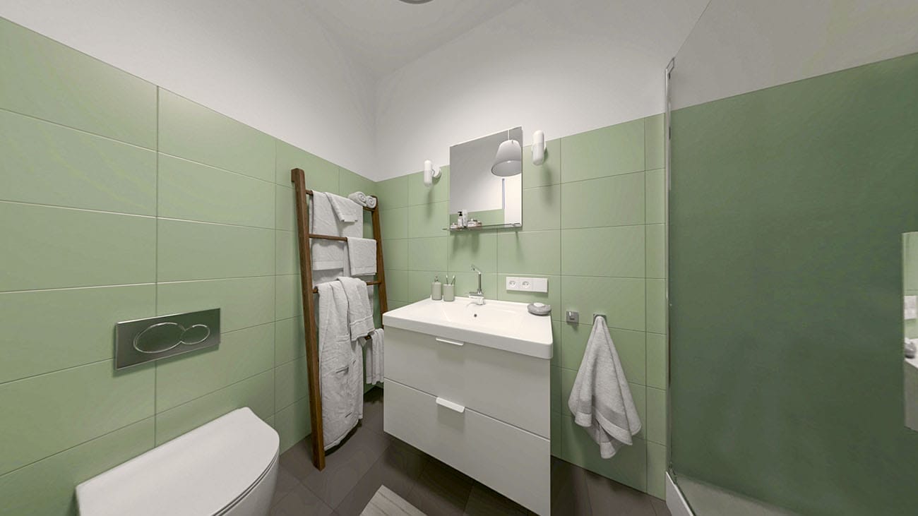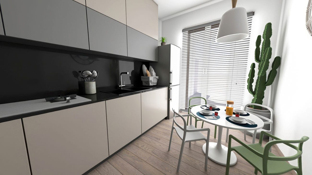 Trilocale composto da: soggiorno, cucina abitabile, disimpegno e ripostiglio, camera da letto, cameretta, due bagni, giardino privato e cantina. DisponibilitĂ box auto.