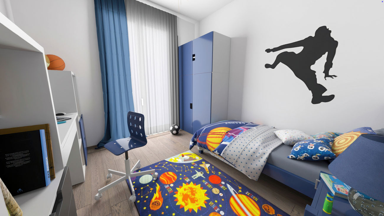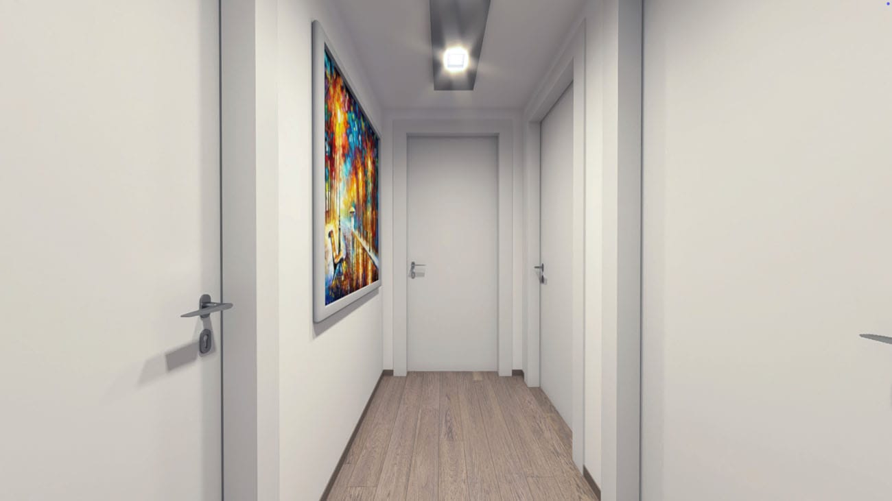 Trilocale composto da: soggiorno, cucina abitabile, disimpegno, camera da letto, cameretta, due bagni, terrazzo, cantina. DisponibilitĂ box auto.